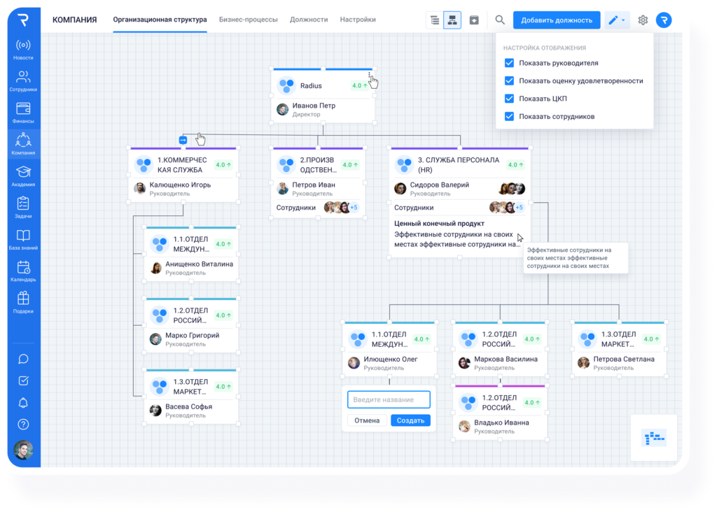 Мой Радиус помогает компаниям решать задачи, развивать культуру, сохранять знания, управлять мотивацией и наводить порядок в команде. Быстрый старт без долгих настроек.