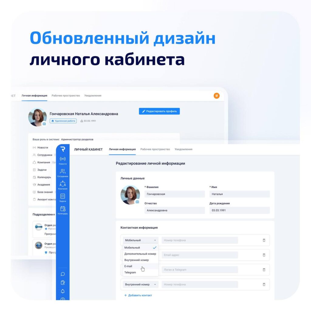 Мы освежили интерфейс личного кабинета. Он стал чище и логичнее, работать с профилем и контактными данными стало удобнее.