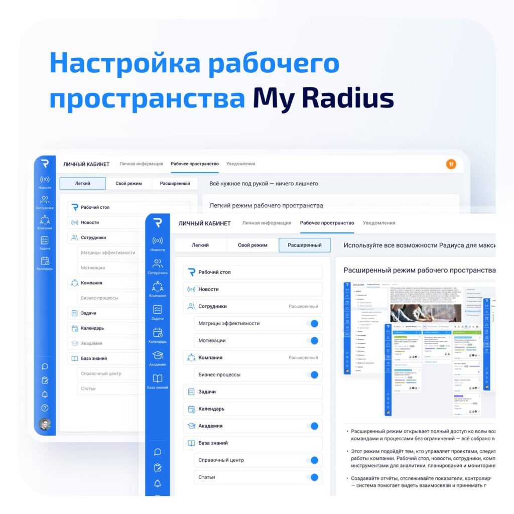 «Мой Радиус» — это надежная российская платформа для совместной работы и управления бизнесом, которая может работать как внутренний портал и единое пространство для командного взаимодействия.