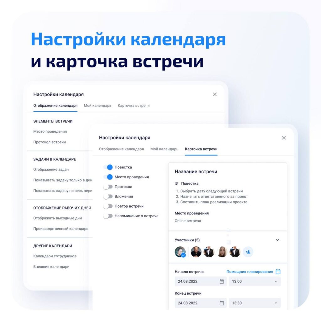 Карточку встречи можно настроить под свои задачи: