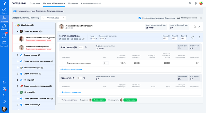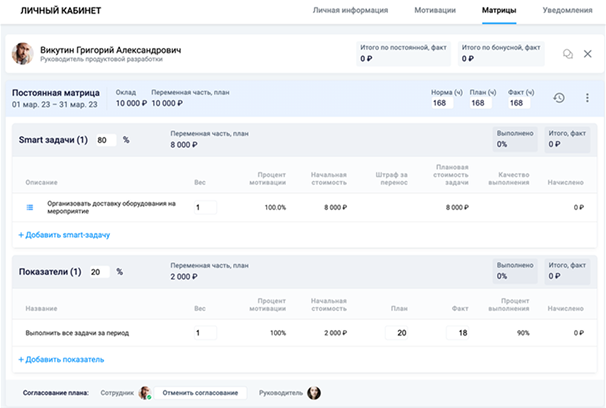- Сотрудники: видят свою мотивацию в личном кабинете, на закладке «Мотивации»