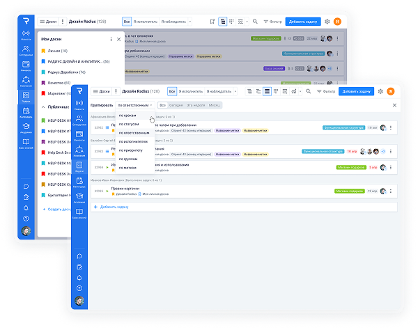 Первый шаг к систематизации работы вашей компании — это научиться эффективно работать с задачами. В программе планировщик задач Мой Радиус вы можете настроить работу команд и выстроить четкий подход в системе управления проектами. Мы предлагаем сервис, который поможет организовать вашу команду, обеспечивая удобный способ распределения задач и отслеживания прогресса.